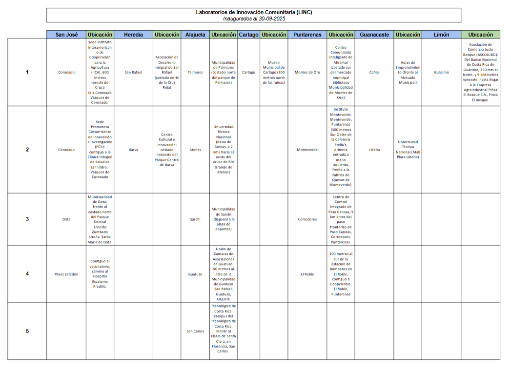 Ubicaciones de Laboratorios de Innovación Comunitaria
